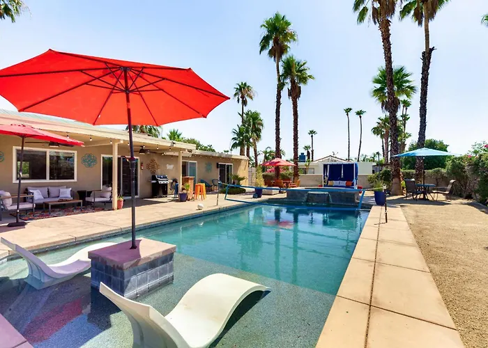 Guests can dine in a fully-equipped kitchen, as well as an outdoor dining area, provided at this Palm Springs villa. There is also a refrigerator, a stove top, and kitchenware available in the kitchen. Offering American dishes, restaurant Billy Reed's Restaurant is located a short way from Coachella Rental Poolside Cabanas, Putting Green!. Coachella Rental Poolside Cabanas, Putting Green! is also around 800 metres from Palm Cyn at Via Escuela bus stop. This Palm Springs accommodation has a spa centre, barbecue grills, and a firepit area along with a patio.